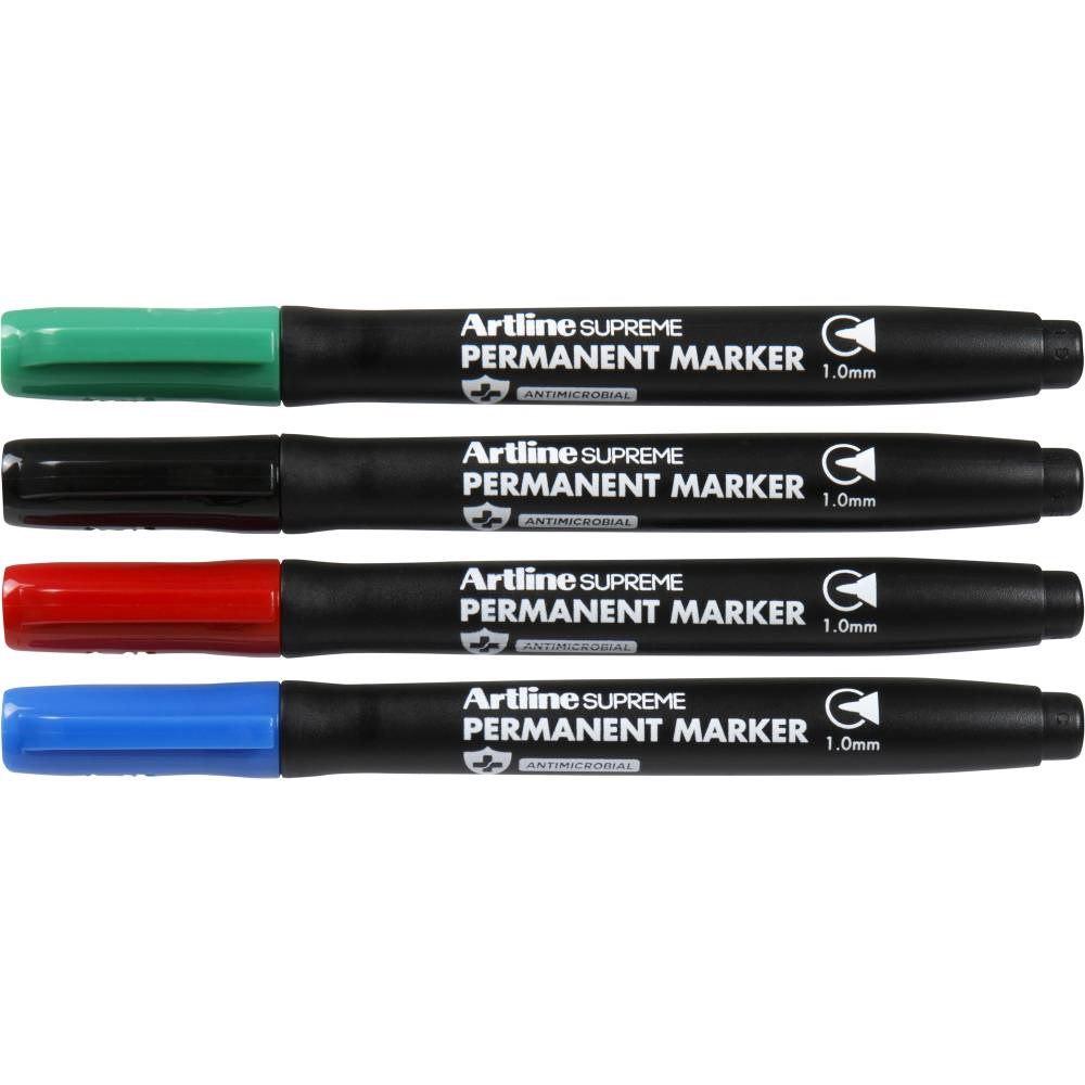 Artline Supreme Permanent Marker Bullet 1mm Assorted Colours Pack Of 4