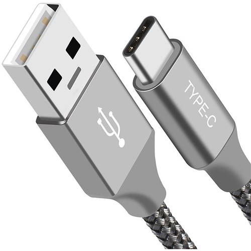 • USB-C 3.1 Type-C Data Sync Charger Cable Silver Strong Braided Heavy Duty Fast Charging for Samsung Galaxy Note 8 and S8 Plus, LG Google, MacBook.