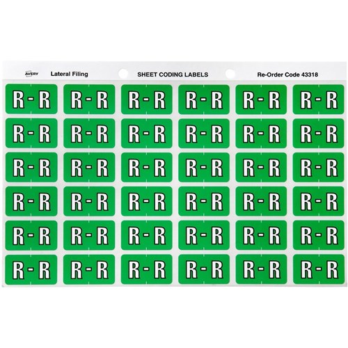 Avery Alphabet Coding Label R Side Tab 25x38mm Light Green Pack Of 180
