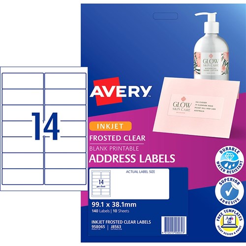 Avery Frosted Clear Inkjet Address Labels J8563 99.1x38.1mm 14UP 140 Labels