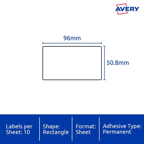 • Size: 96x50.8mm 200 labels, 20 sheets. 10 labels per sheet (10UP).