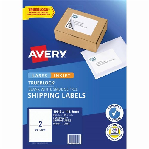 Avery Internet Shipping Laser & Inkjet Labels White L7168 199.6x143.5mm 2UP 20 Labels