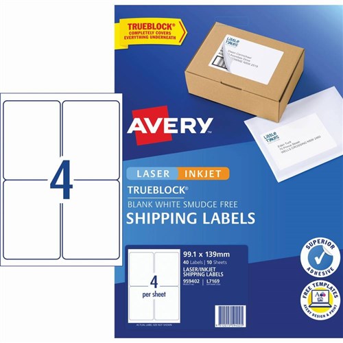 Avery Internet Shipping Laser & Inkjet Labels White L7169 99.1x139mm 4UP 40 Labels