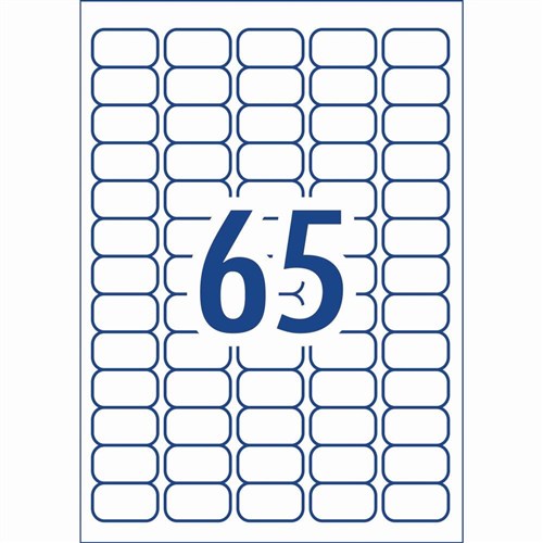 • Size: 38.1x21.2mm 1625 labels, 25 sheets. 65 labels per sheet (65UP).