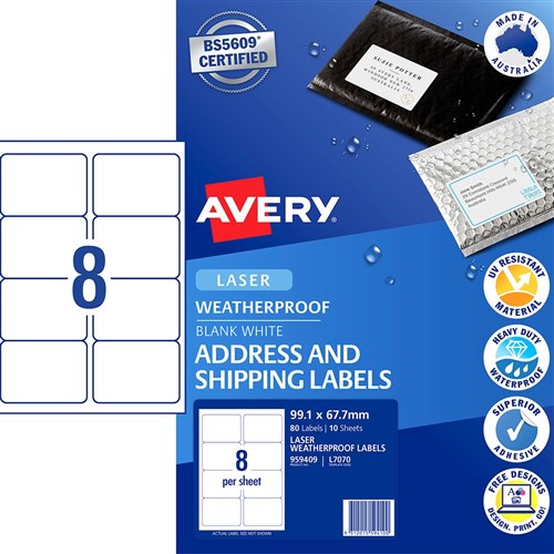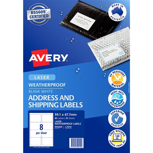 Avery Weatherproof Address & Shipping Laser White L7070 99.1x67.7mm 8UP 80 Labels