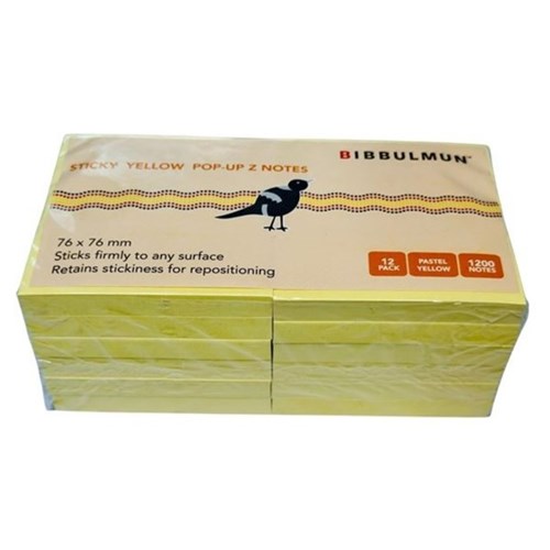 Bibbulmun Everyday Pop Up Z Line Sticky Notes 76 x 76mm Yellow Pack Of 12