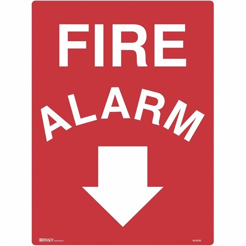 Brady Fire Sign Fire Alarm With Arrow Down 450W x 600mmH Metal White/Red