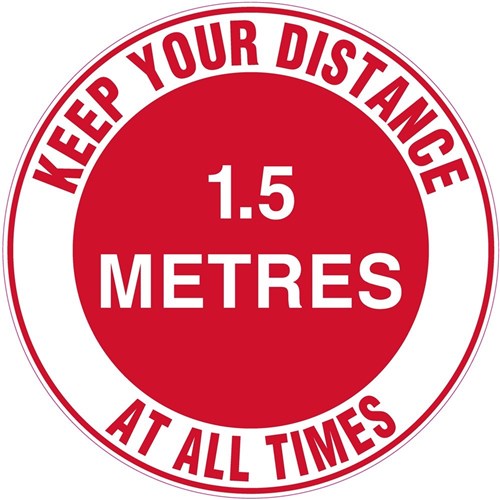 Brady Floor Marker Keep Your Distance At All Times 1.5m 440mm Diameter White/Red