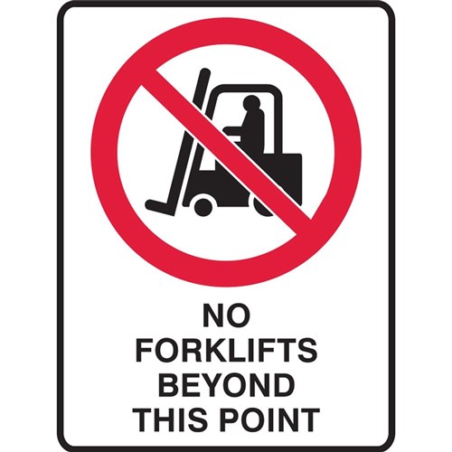 Brady Prohibition Sign No Forklifts Beyond This Point 450W x 600mmH Poly White/Black