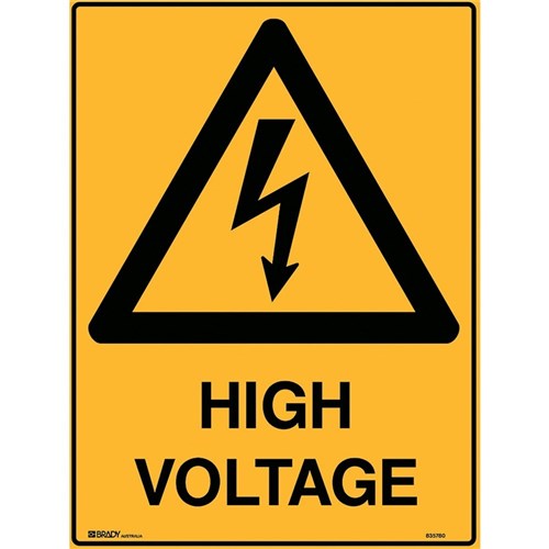 Brady Warning Sign High Voltage 450W x 600mmH Polypropylene Yellow And Black