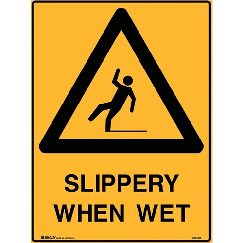Brady Warning Sign Slippery When Wet 450W x 600mmH Polypropylene Yellow And Black