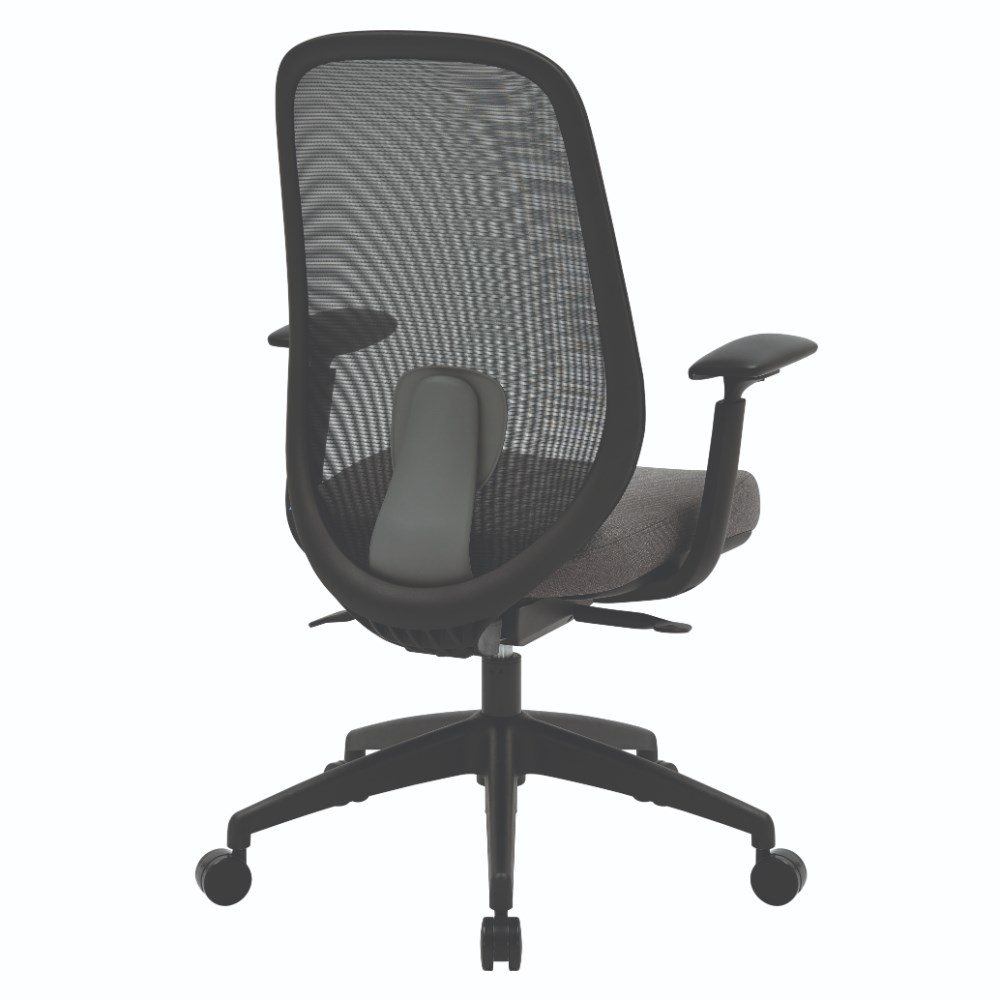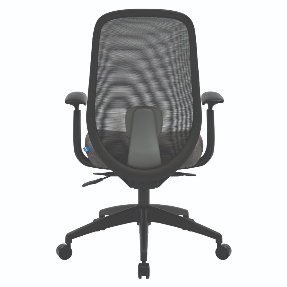 Buro Force High Back Office Chair + Arms Black Frame Grey Fabric Seat Mesh Back