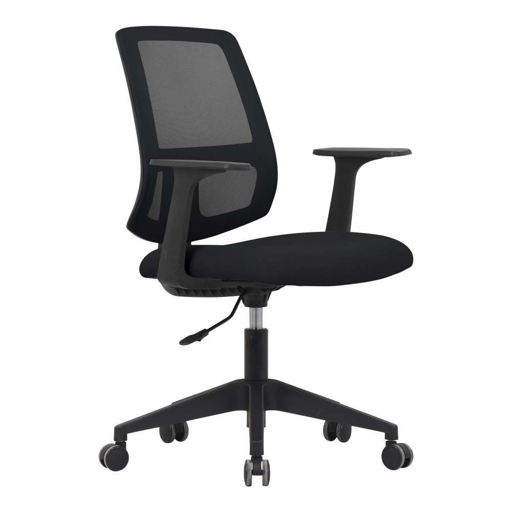 • Composition: Mesh back, upholstered seat and strong nylon 5 star base with 50mm nylon castors. Fixed armrests for extra ergonomic support.