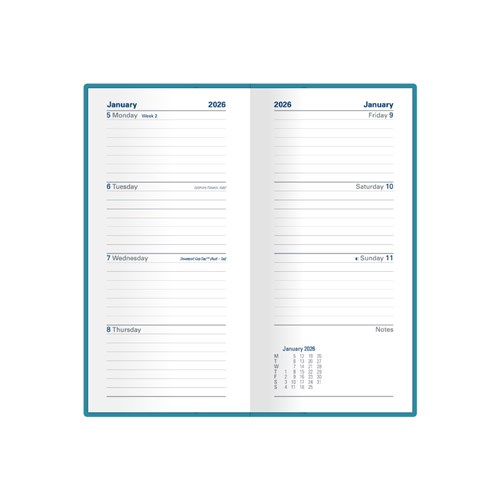 Collins Belmont Colours Diary B6/7 Slimline Week To View Portrait Teal