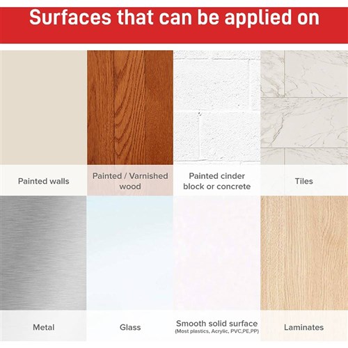 • Works on a variety of indoor surfaces, such as painted Gyprock, finished wood, tile, metal and glass