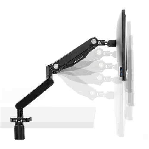 • Easily mounted via clamp or grommet. Holds a monitor up to 8kg (up to 40 inch monitors) and meets VESA mounting standards.