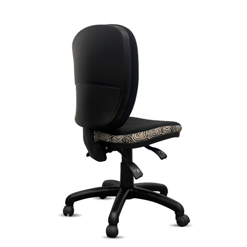 • A unique commercial fabrics designed by Nelly Patterson (Indigenous Artist) combined with K2 Black Fabric to upholster the chair.