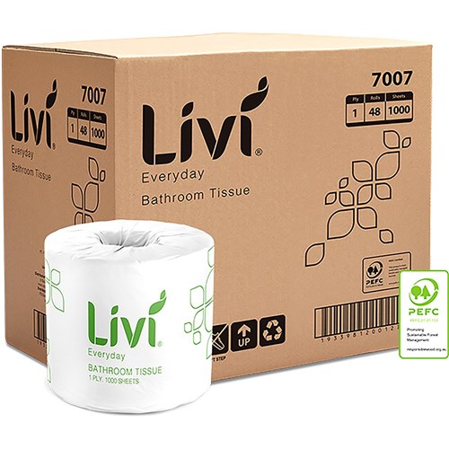 Livi Everyday Toilet Paper Rolls 1 Ply 1000 Sheets Box Of 48