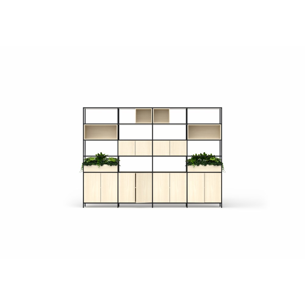 • Minimalistic design to liven up wall spaces. Configurable to custom fit any space, meeting diverse storage needs through multiple storage options including cubbies and cabinets.