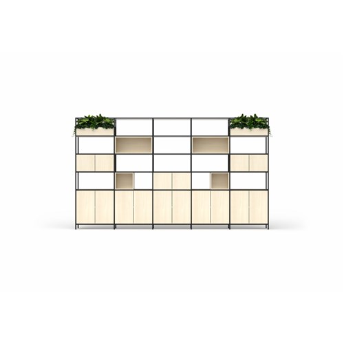 • Includes: End frame 2400 (2 pack), middle frame (2 x 2 pack), rails (10 pack x 6), shelves (5 pack x 6), small cubby x 2, full cupboard x 2, full cupboard x 5, small cupboard x 3 and planter box x 2. Plants not included.
