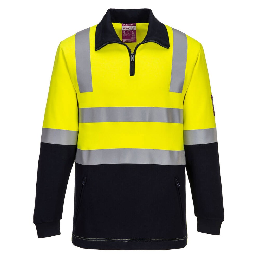 Portwest Modaflame Fire Resistant Day Night Brushed Fleece Jumper 2XL Yellow/Navy
