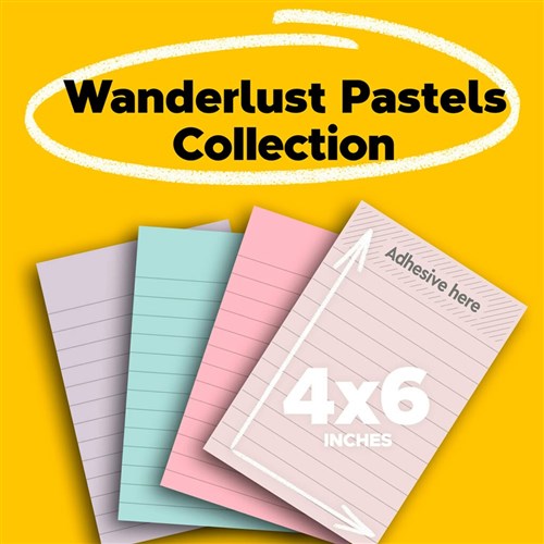 Post-It 4621R-4SSNRP Lined Super Sticky Notes 101mmx152mm Wanderlust Pastels Pack Of 4