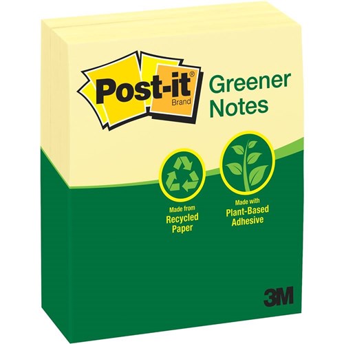 • Post-it® Greener Notes in 76mm x 127mm size are made from 100% recycled paper and a plant-based adhesive - which means no new trees were used.