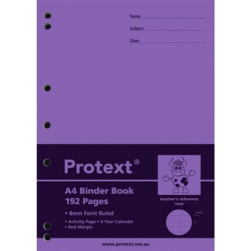 Protext Binder Book A4 7 Hole 8mm Ruled 70gsm 192 Page Cow