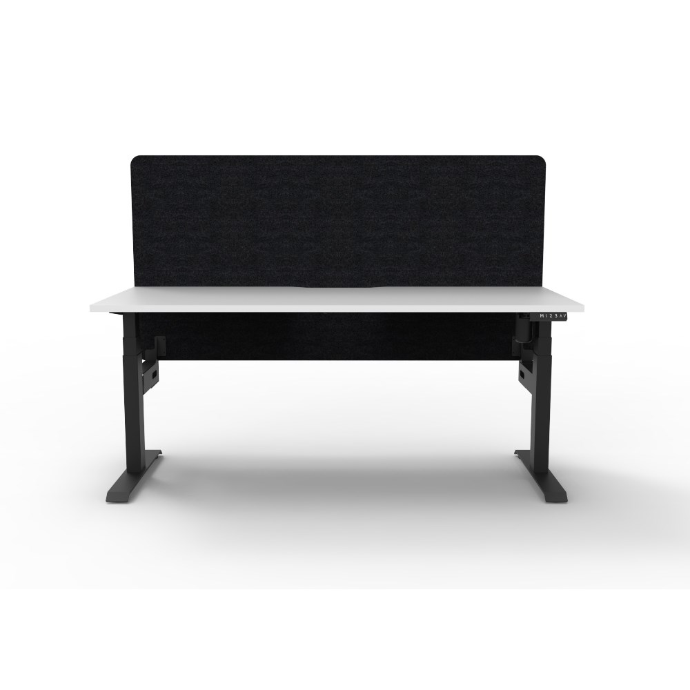 • Electric height adjustable single sided workstation with Natural White top and Black Satin frame, Black Eco screen.