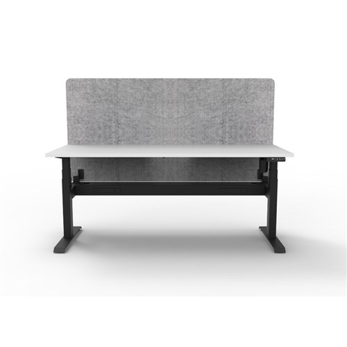 • Electric height adjustable single sided workstation with Natural White top and Black Satin frame, Grey Eco screen and cable tray.