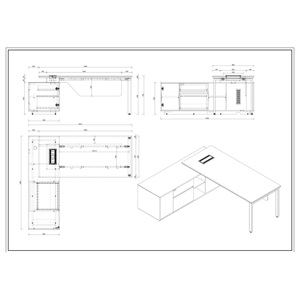 • Desk Dimensions: 1800W x 800D x 748mmH.