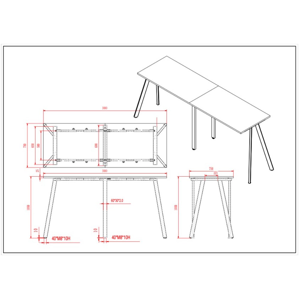 • Dimensions: 3000W x 750D x 1050mmH.