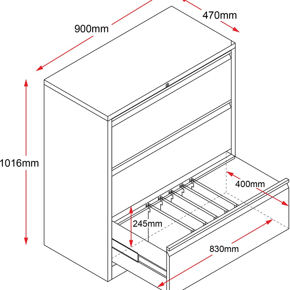 • Rapidline Go Lateral Filing Cabinet 3 Drawer 900W x 473D x 1016mmH Black
