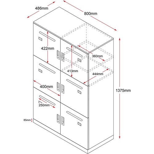 • Rapidline Go Office Locker Unit 6 Compartments 800W x 486 x 1375mmH White China