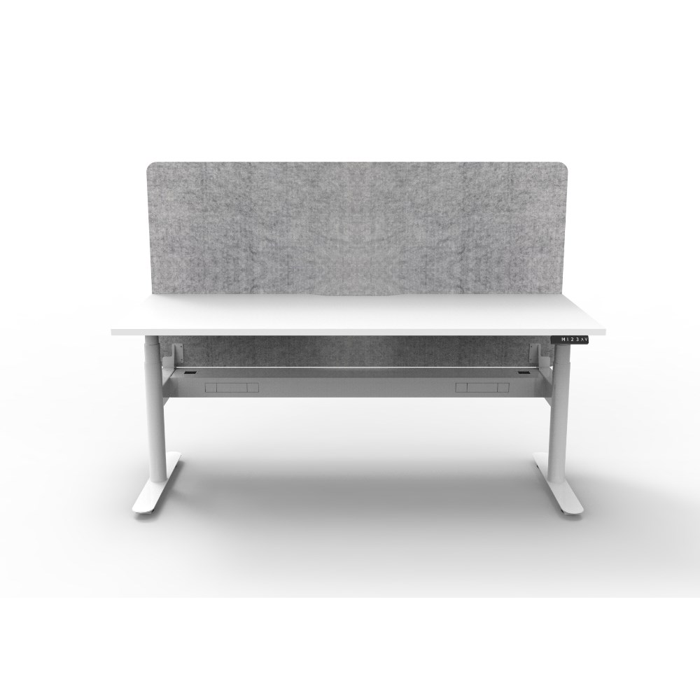 Rapidline Halo+ Single Sided Workstation + Grey Eco Screen +Tray 1500Wx620-1270mmH Wht/Wh