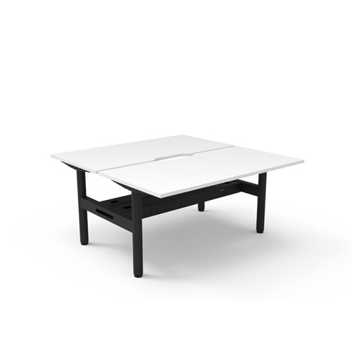 • Natural White top Black Satin frame. Double sided workstation with cable tray.