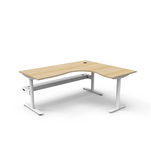 • Natural Oak top White Satin frame. Corner workstation with cable tray.