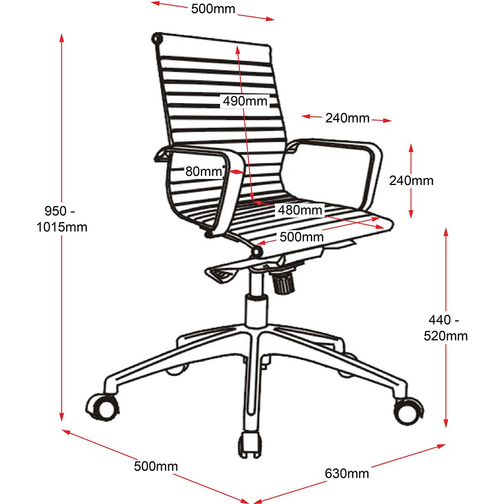 • Chair Dimensions: Seat 485W x 460D x Back 490H x Seat 490-610mmH.