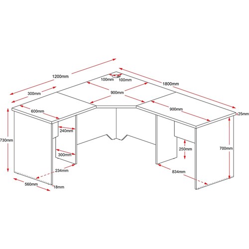 Rapidline Rapid Worker Corner Workstation 1200/1800W x 600D x 730mmH White And Ironstone