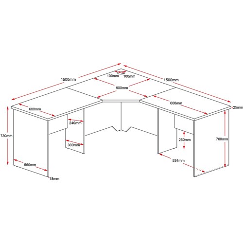 Rapidline Rapid Worker Corner Workstation 1500/1500W x 600D x 730mmH White And Ironstone