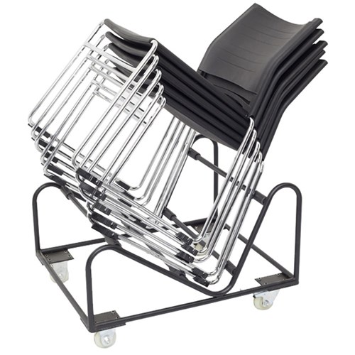 • Move your conference and training chairs around easily with this trolley. Can be used with any sled base chair, for example Zing, Zola, PMVBK, Wimbledon. Black powder coated frame.