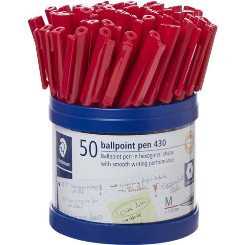 Staedtler 430 Stick Ballpoint Pens Medium 1mm Red Cup of 50