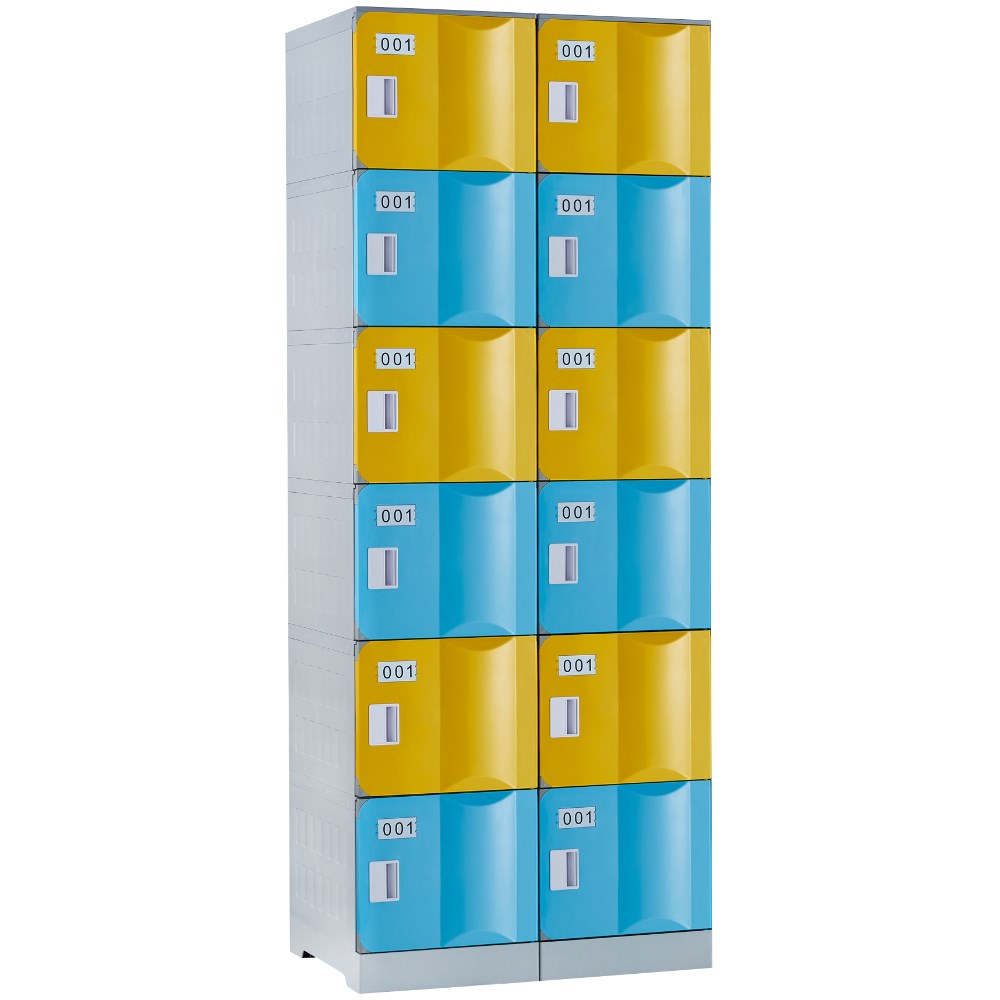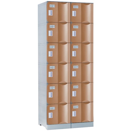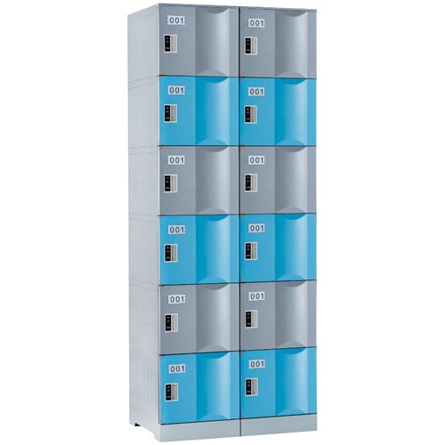 • Steelco ABS Plastic Locker 6 Door Bank Of 2 760W x 500D x 1940mmH Assorted Colours